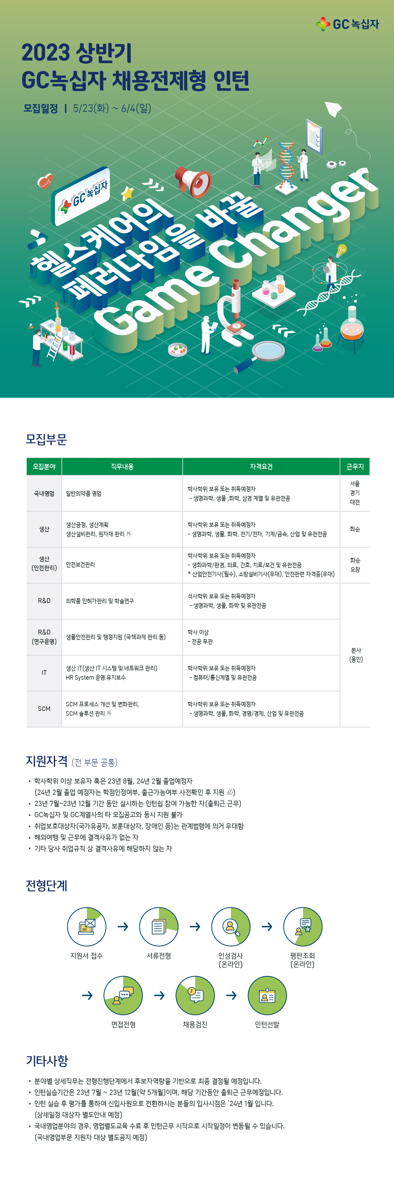 [GC녹십자] 2023년 상반기 채용전제형 인턴 채용 (~6/4)