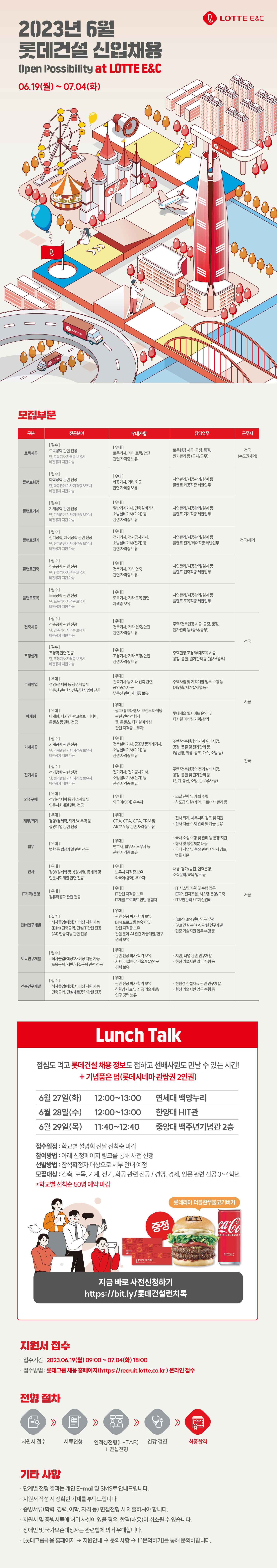 [롯데건설] 2023년 신입 채용(~7/4 18:00) 및 런치 채용설명회 안내