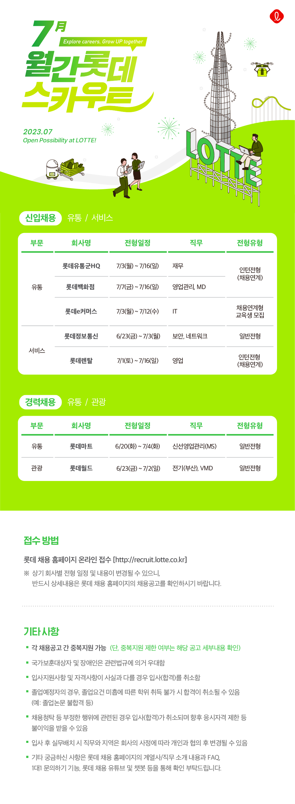 반드시 상세내용은 롯데 채용 홈페이지의 채용공고를 확인하시기 바랍니다.