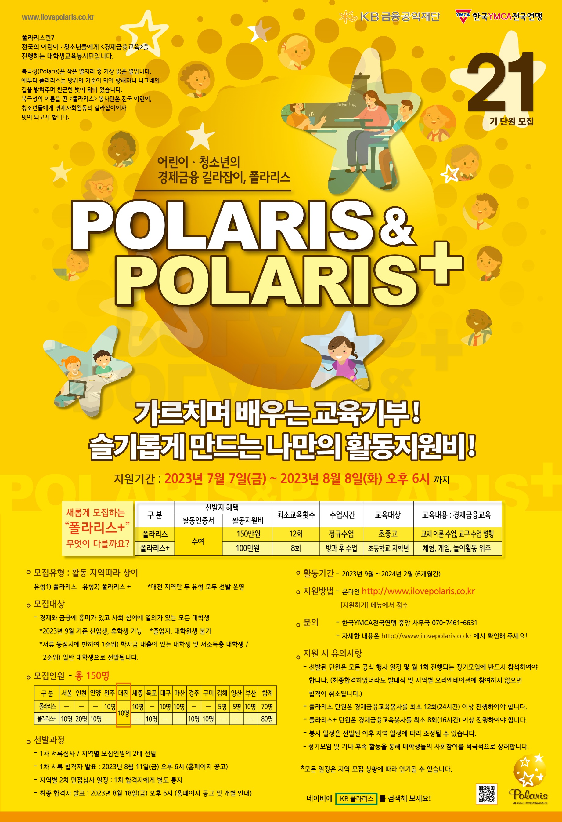 KB-YMCA 대학생경제금융교육봉사단 폴라리스&폴라리스+ 21기를 모집합니다.