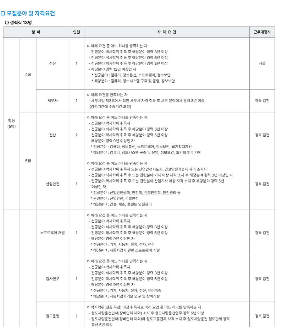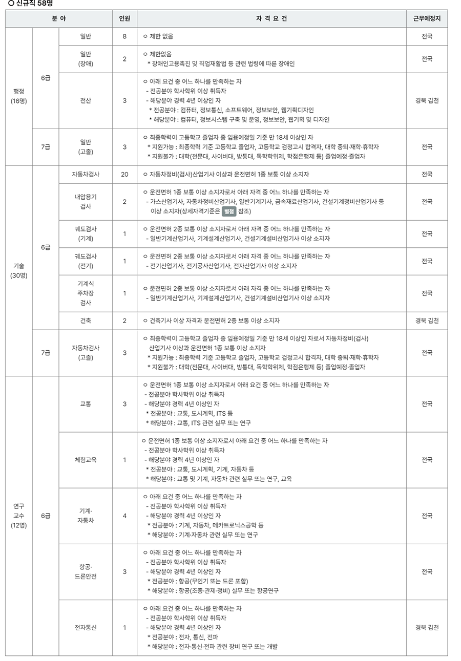 한국교통안전공단 직원 공개채용 공고