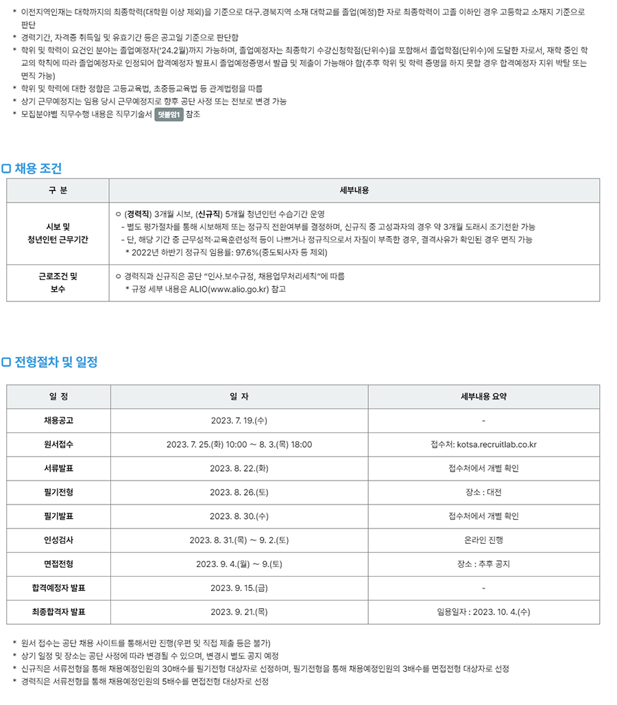 ■ 접수링크 : https://kotsa.recruitlab.co.kr/