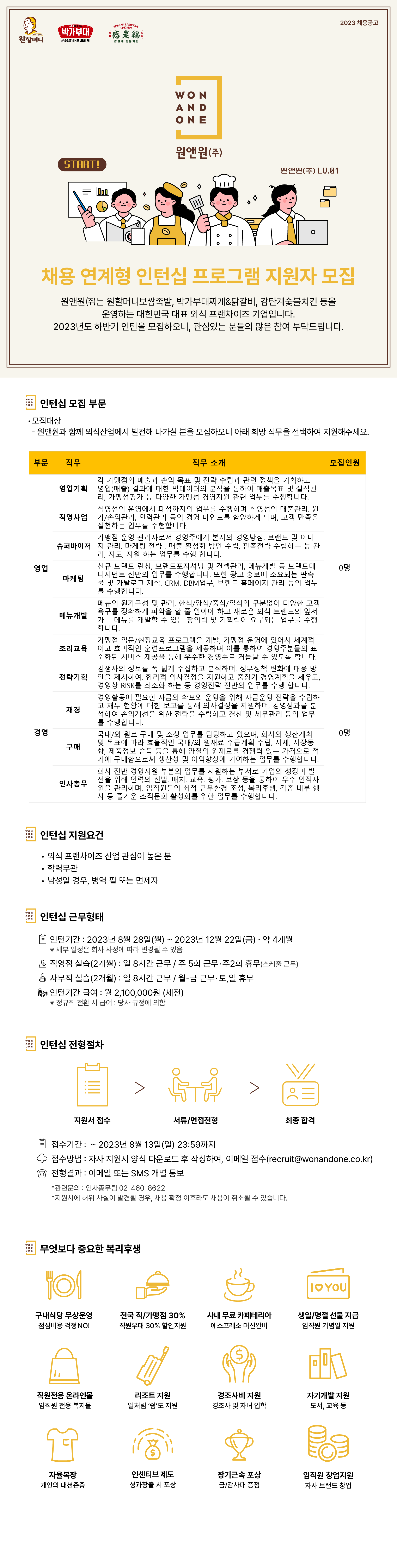 [원앤원] 채용연계형 인턴십 프로그램 지원자 모집