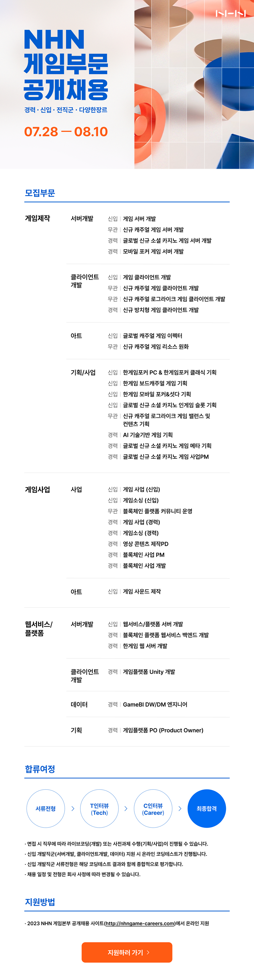 [NHN] 게임부문 공개채용 (~8/10)