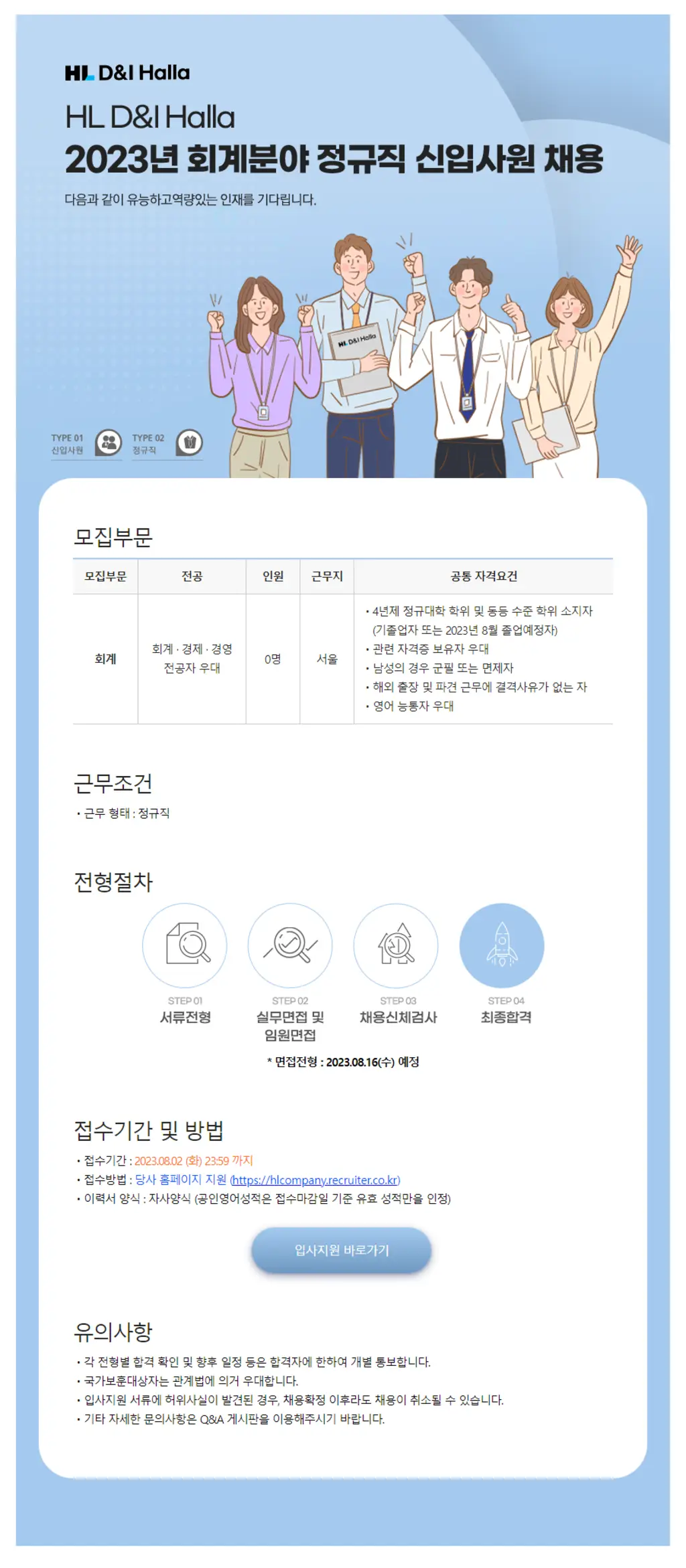 ○ 지원 홈페이지 : https://hlcompany.recruiter.co.kr/app/jobnotice/view?systemKindCode=MRS2&jobnoticeSn=151623