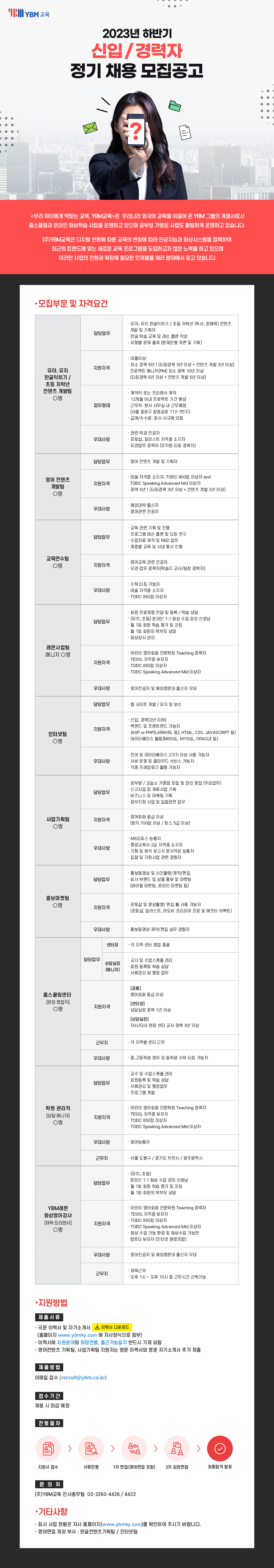 [YBM교육] 2023년 하반기 신입/경력 정기채용 (~채용시 마감)