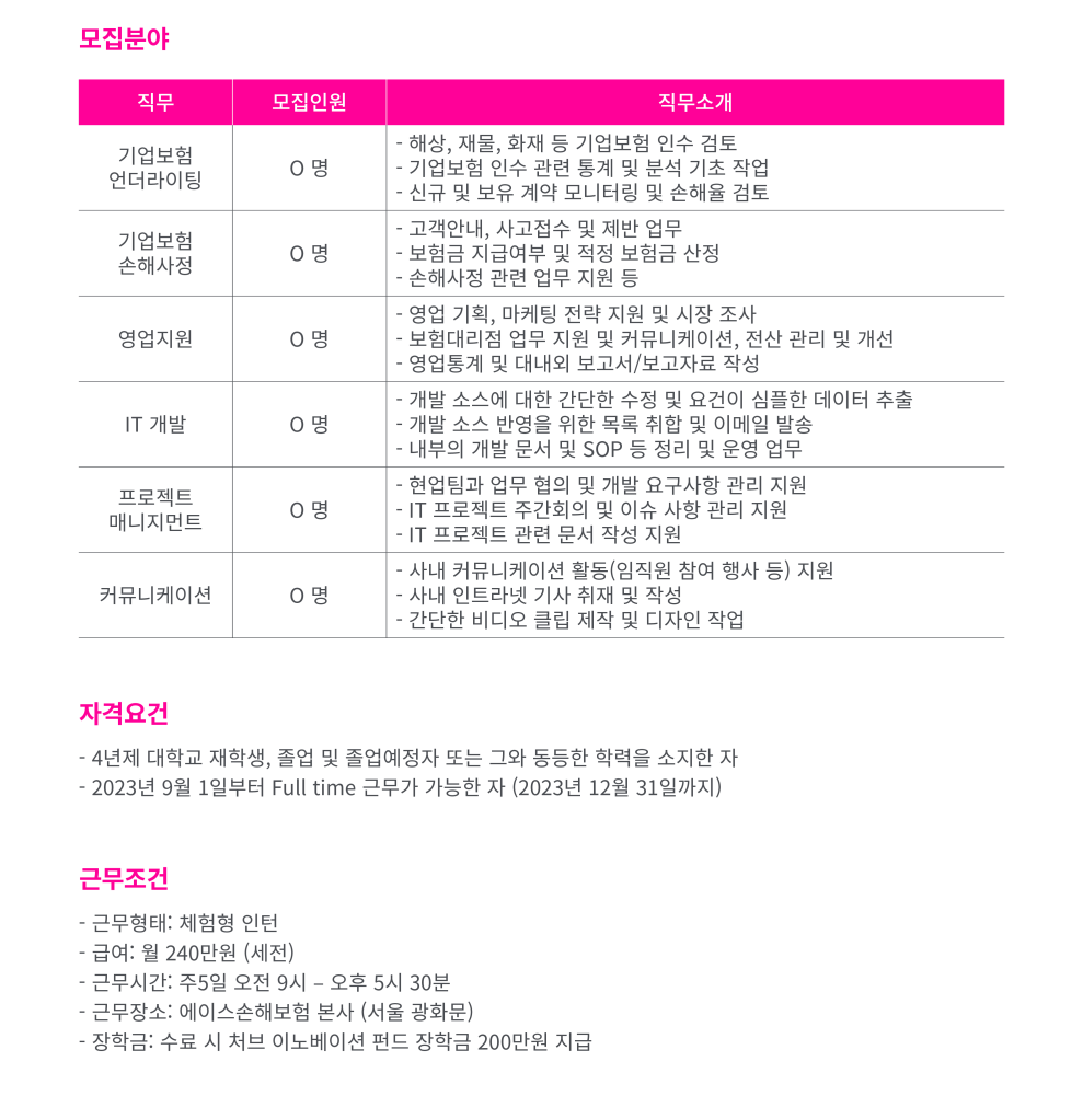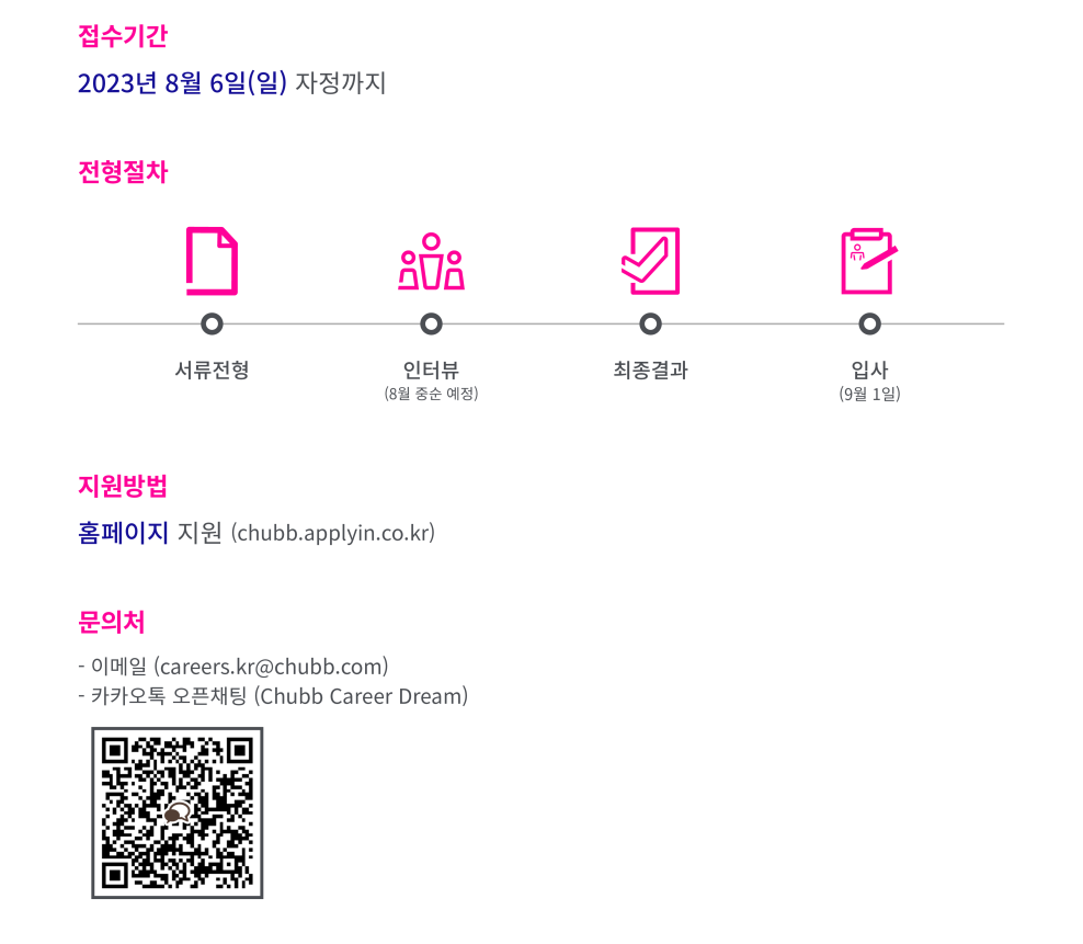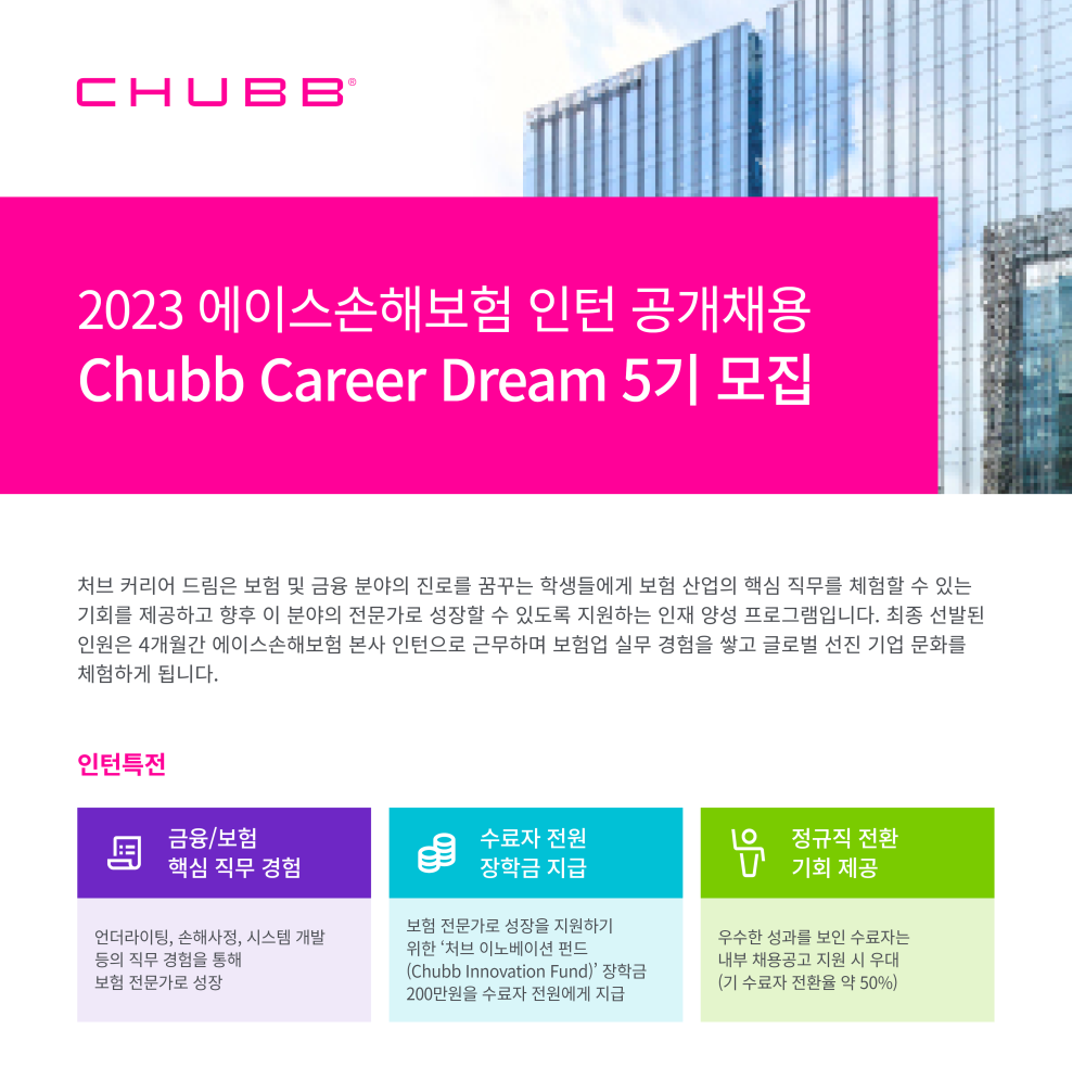 [에이스손해보험] Chubb Career Dream 5기 인턴 채용 (~8/6)