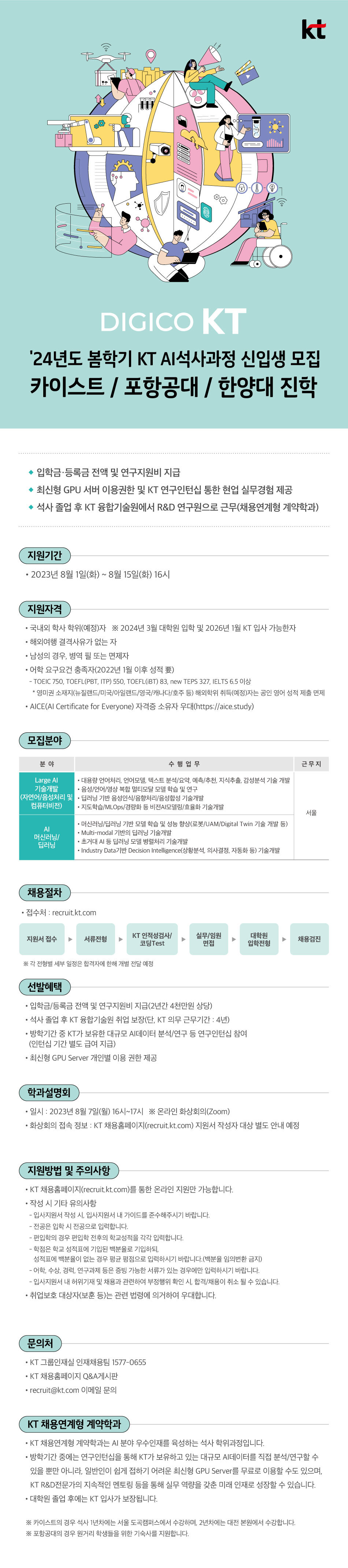 ㆍ석사 졸업 후 KT 융합기술원 취업 보장(단, KT 의무 근무기간 : 4년)