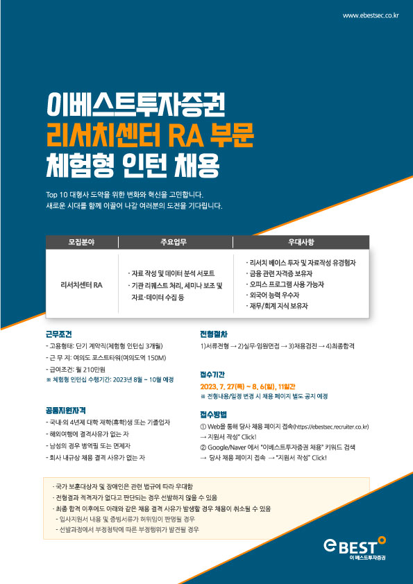 ○ 지원 홈페이지 : https://ebestsec.recruiter.co.kr/app/jobnotice/view?systemKindCode=MRS2&jobnoticeSn=152030