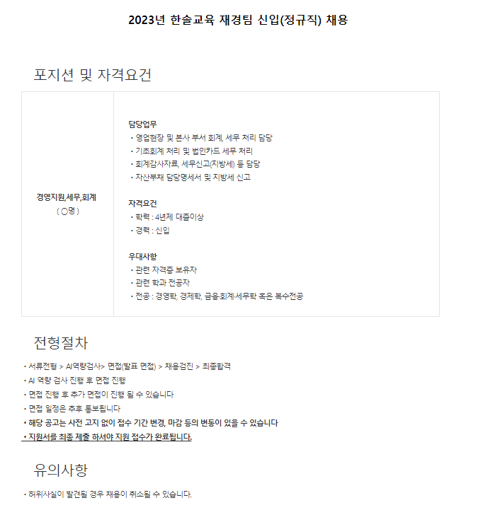 ○ 지원 홈페이지 : https://eduhansol.recruiter.co.kr/app/jobnotice/view?systemKindCode=MRS2&jobnoticeSn=152427
