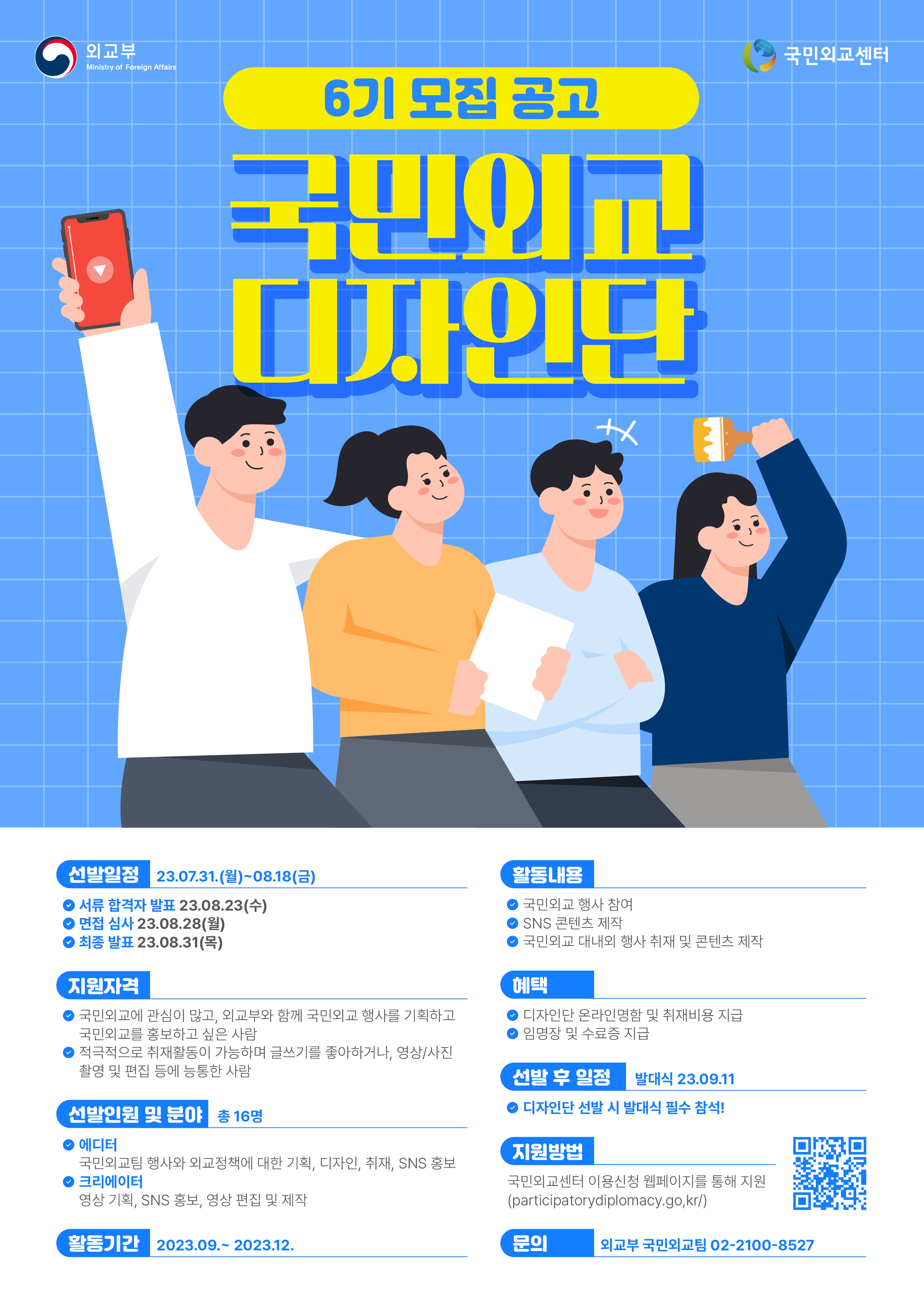 외교부에서는 국민외교에 직접 참여하고 홍보할 수 있는 국민외교 디자인단 6기를 모집합니다.