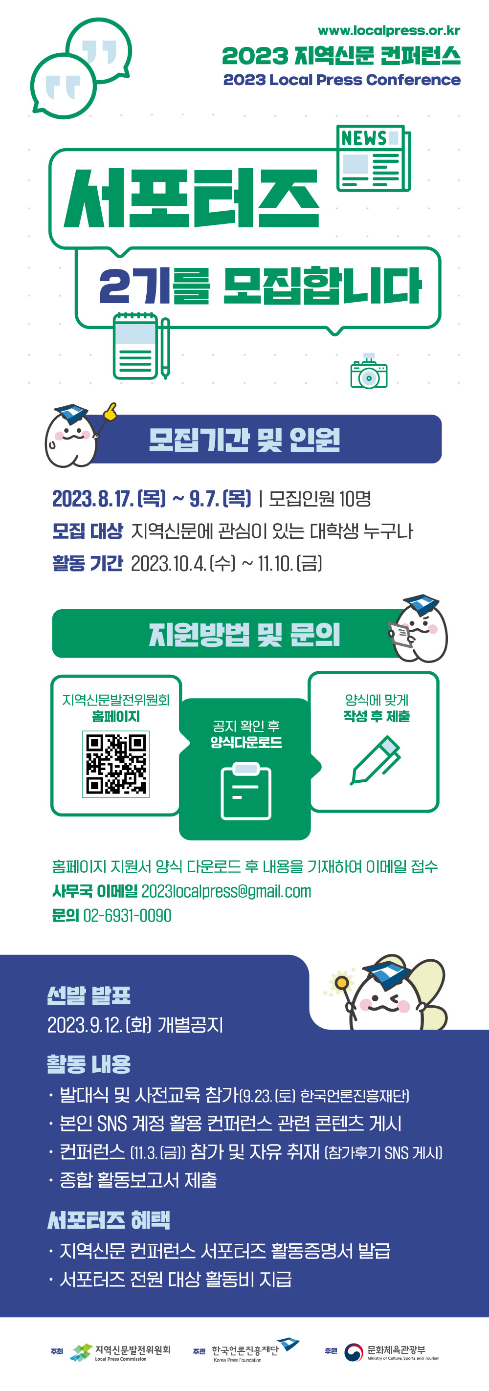 [지역신문발전위원회] 2023 지역신문 컨퍼런스 대학생 서포터즈 모집 (~9/7)