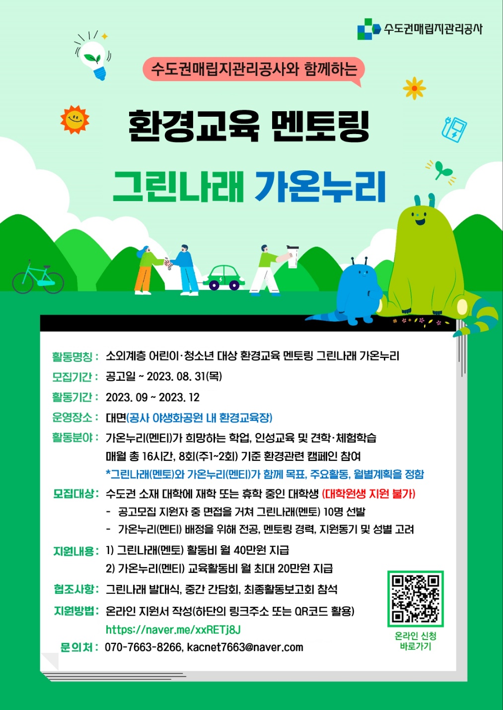 [수도권매립지관리공사] 그린나래 멘토단 모집 (~8/31)