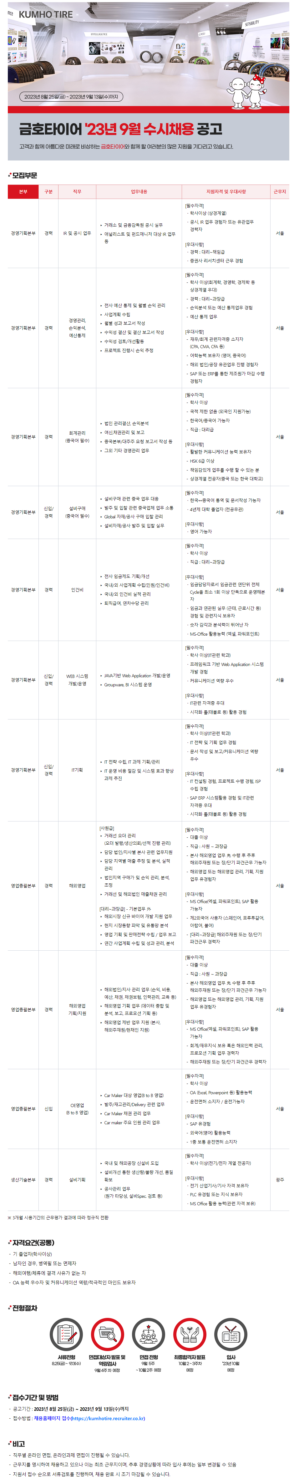 ○ 홈페이지 : https://kumhotire.recruiter.co.kr/app/jobnotice/view?systemKindCode=MRS2&jobnoticeSn=154923