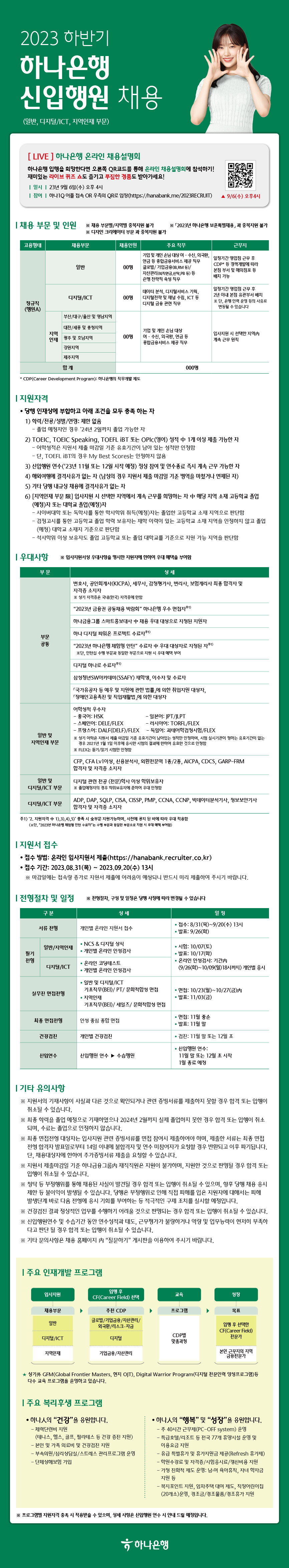 ○ 홈페이지 : https://hanabank.incruit.com/hire/viewhire.asp?projectid=103