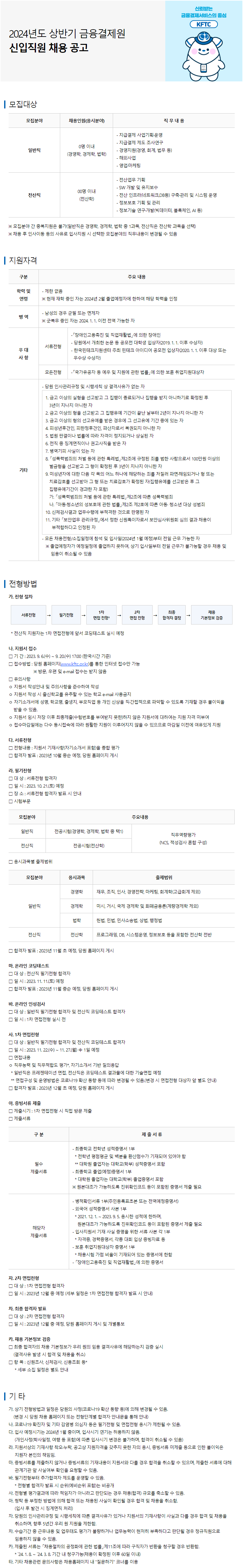 [금융결제원] 2024년도 상반기 신입직원 채용 (~9/20 17:00)