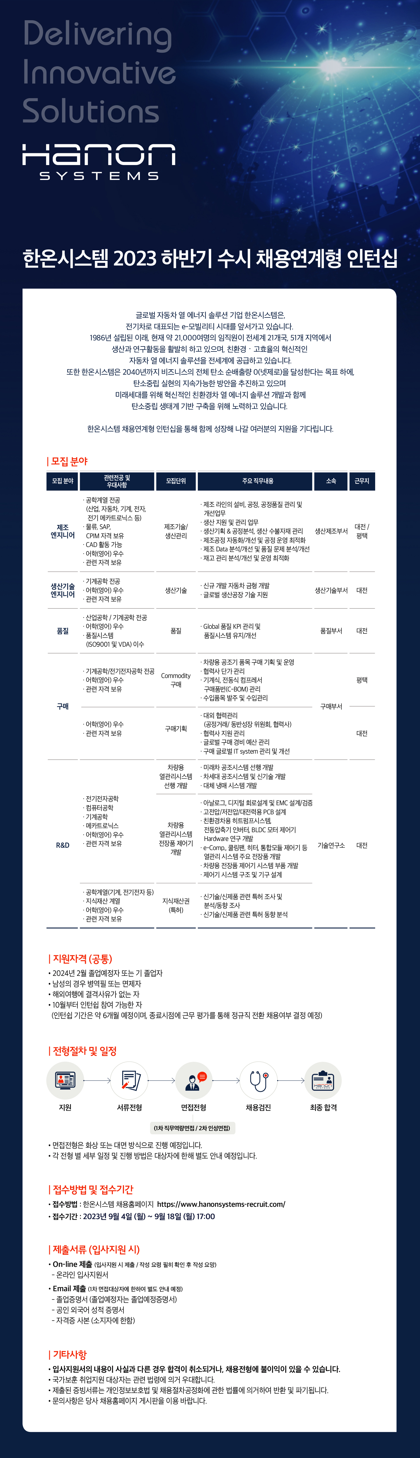 [한온시스템] 2023 하반기 수시 채용연계형 인턴십 모집 (~9/18 17:00)