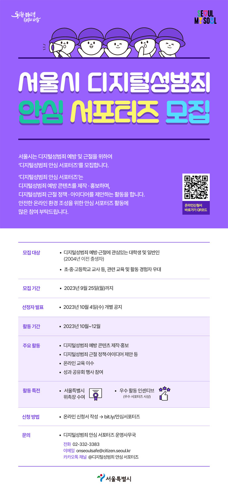 ○ 주요활동 : 디지털성범죄 예방 콘텐츠 제작·홍보 / 근절 정책·아이디어 제안 / 온라인 교육 이수 등