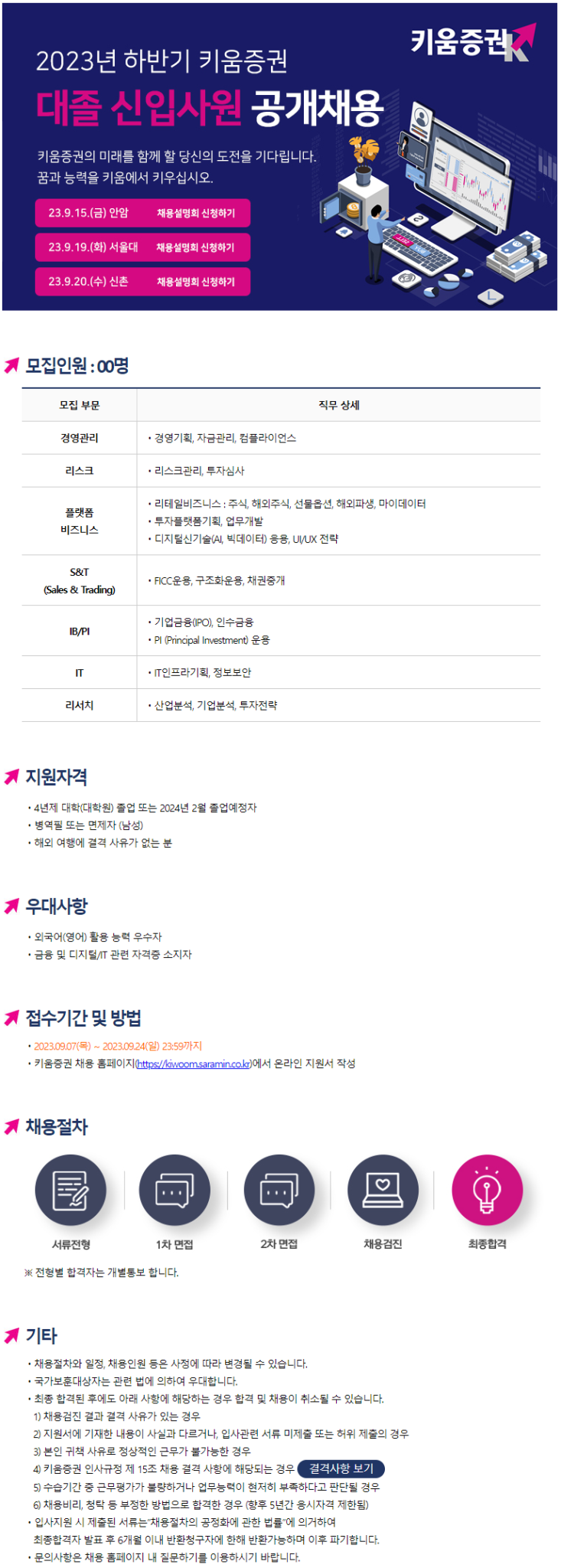 [키움증권] 2023년 하반기 대졸 신입사원 공개채용 (~9/24)