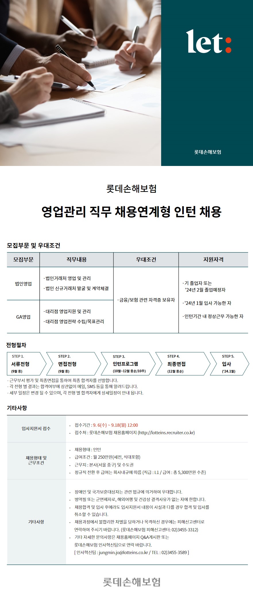[롯데손해보험] 영업관리 직무 채용연계형 인턴 채용 (~9/18 12:00)