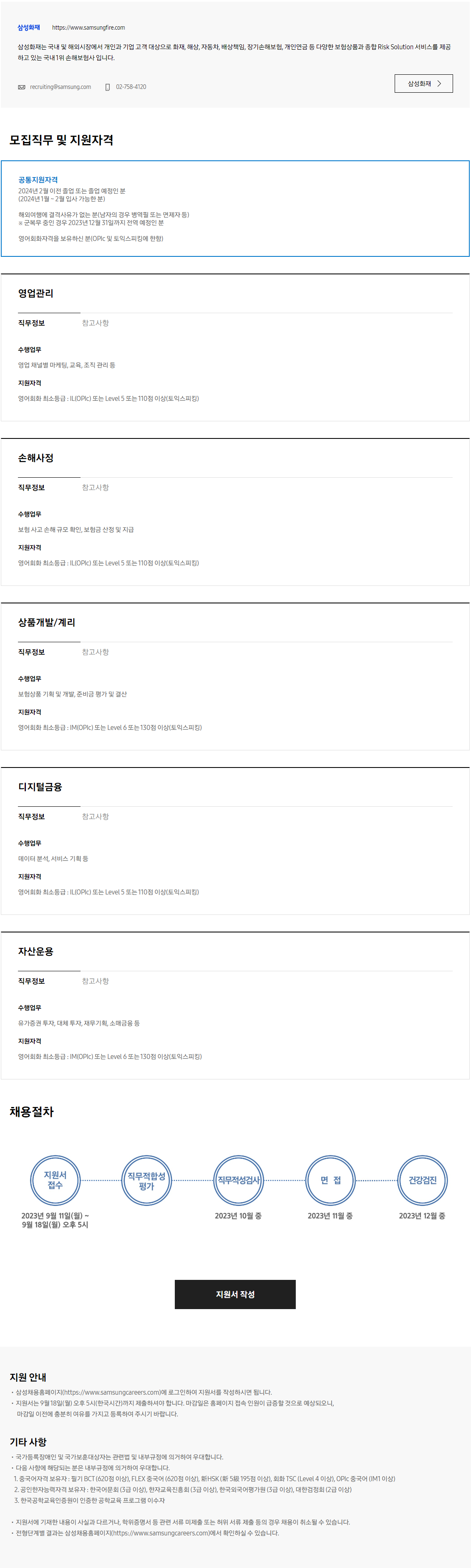 [삼성화재] 2023년 하반기 3급 신입사원 채용 (~9/18 17:00)