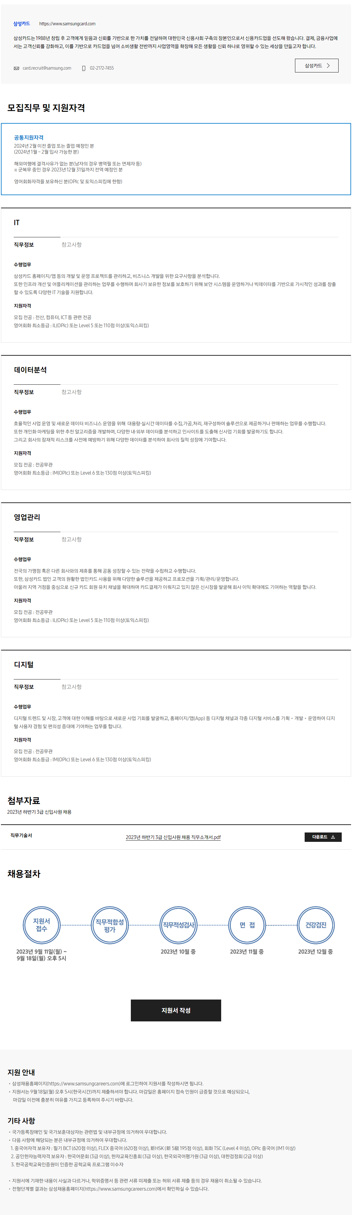 [삼성카드] 2023년 하반기 3급 신입사원 채용 (~9/18 17:00)