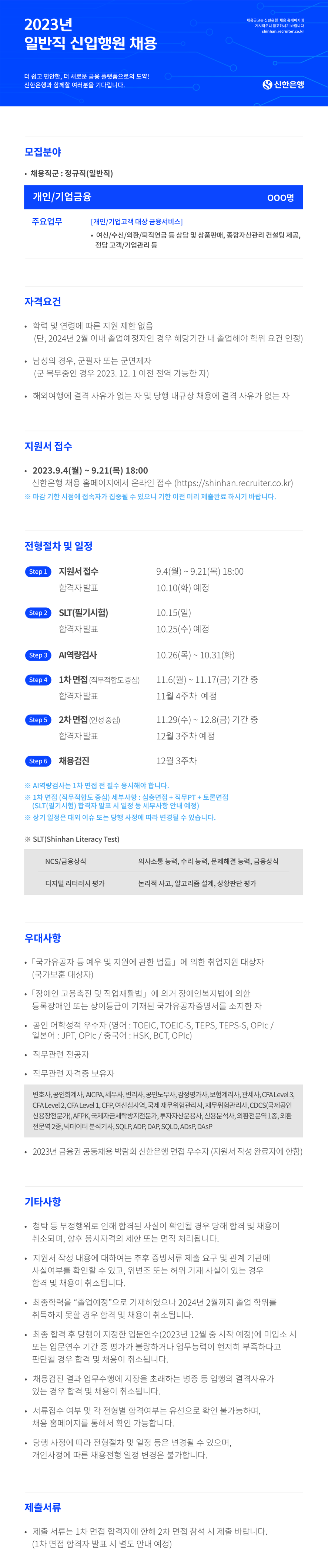 [신한은행] 2023년 일반직 신입행원 채용 (~9/21 18:00)