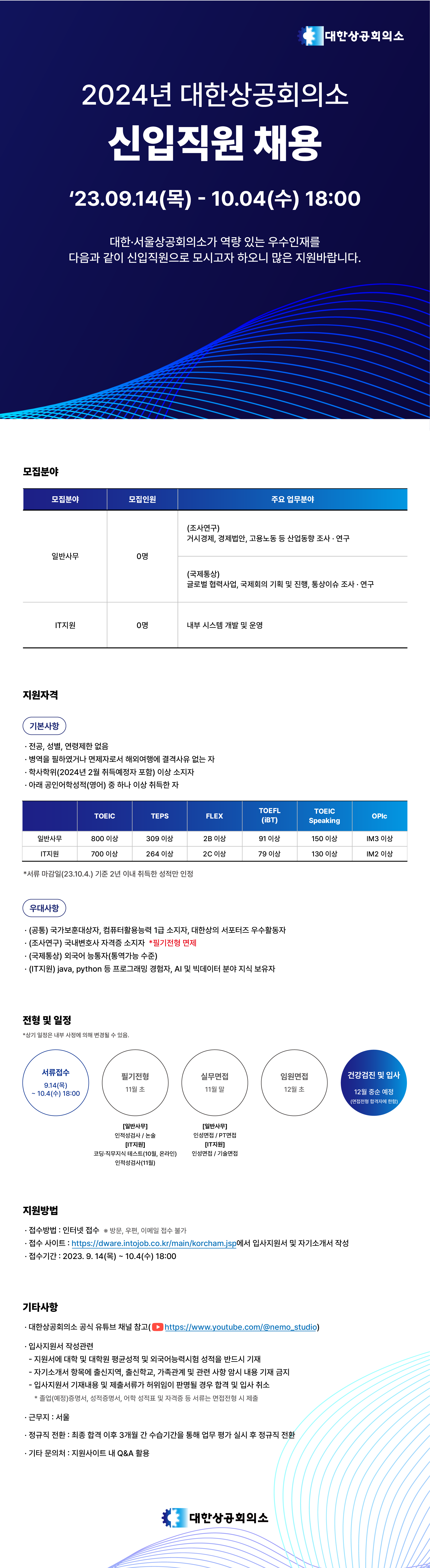 [대한상공회의소] 2024년 신입직원 채용 (~10/4 18:00)