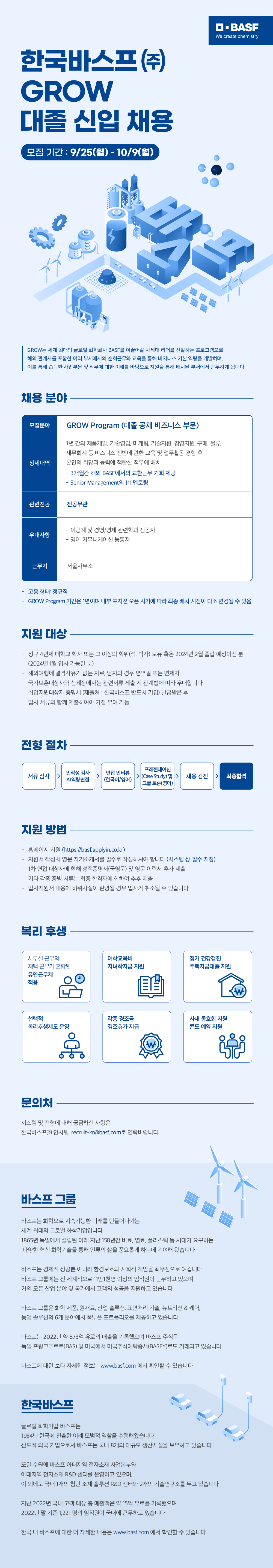 [한국바스프] 2024년 GROW 대졸 신입 공채 (~10/9 20:00)