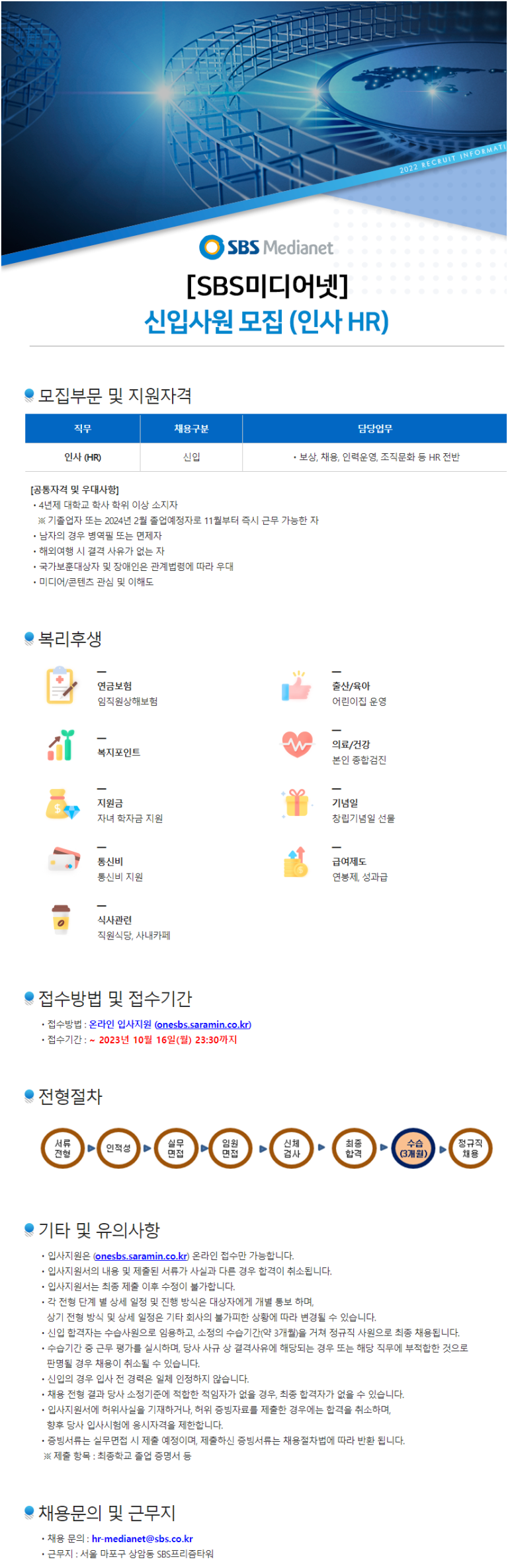 [SBS미디어넷] HR 신입사원 모집 (~10/16)