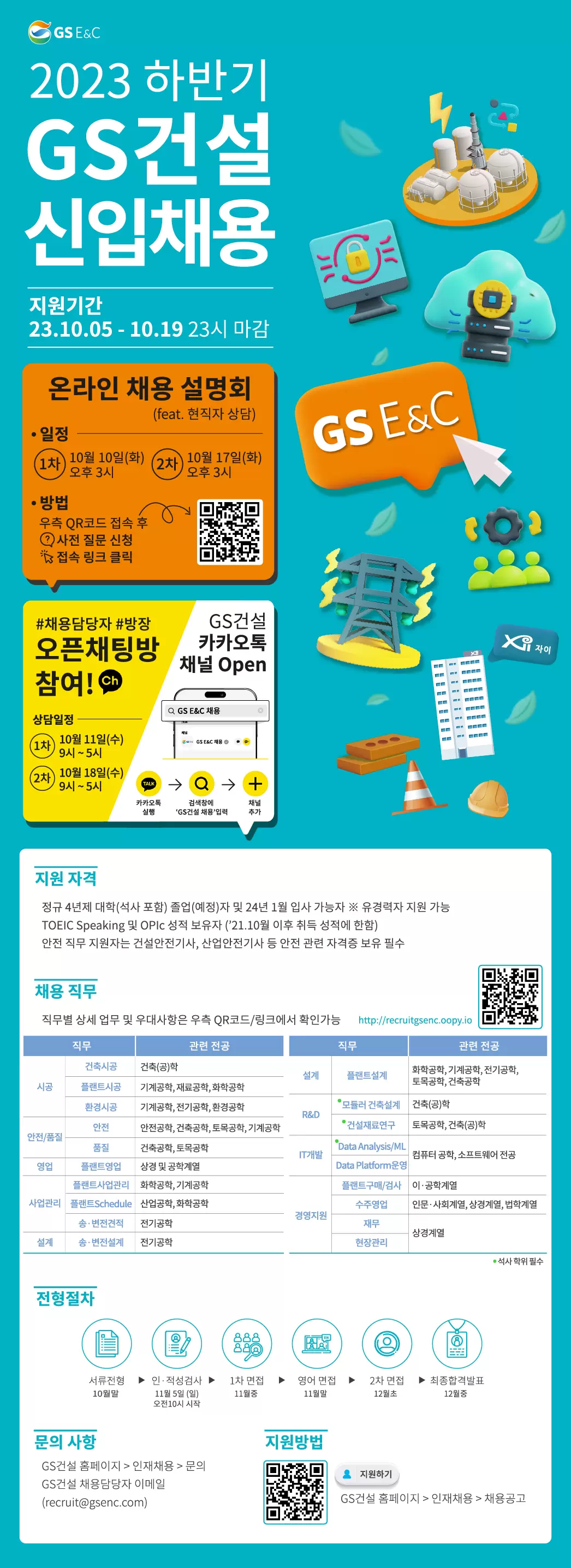 [GS건설] 2023년 하반기 신입사원 채용 (~10/19 23:00)