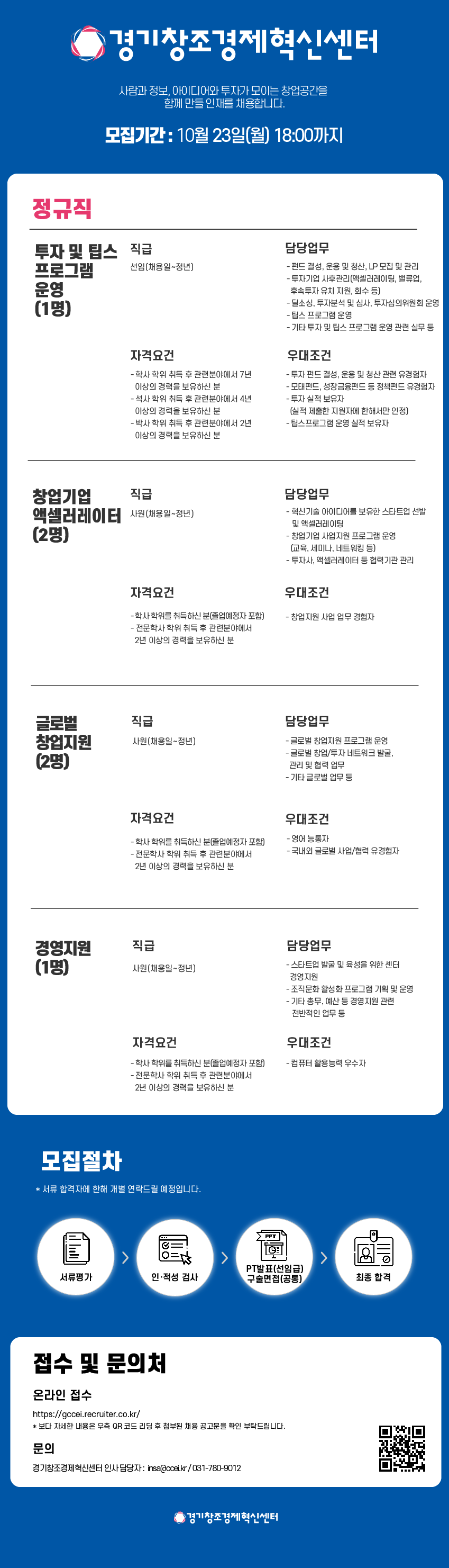 ○ 채용분야 : 투자 및 팁스프로그램 운영 / 창업기업엑셀러레이터 / 경영지원 등