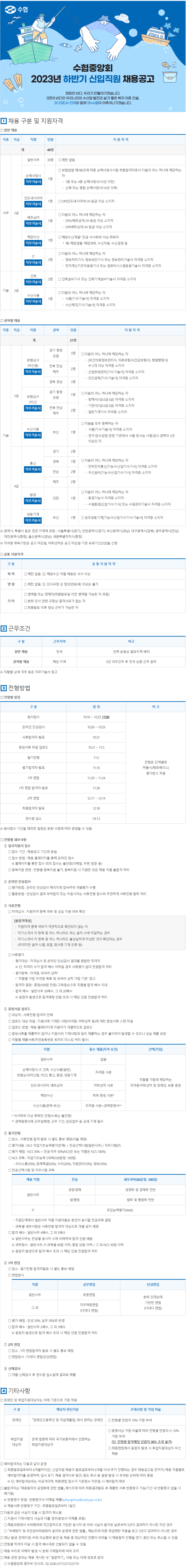 [수협중앙회] 2023년 하반기 신입직원 채용공고 (~10/25 17:00)
