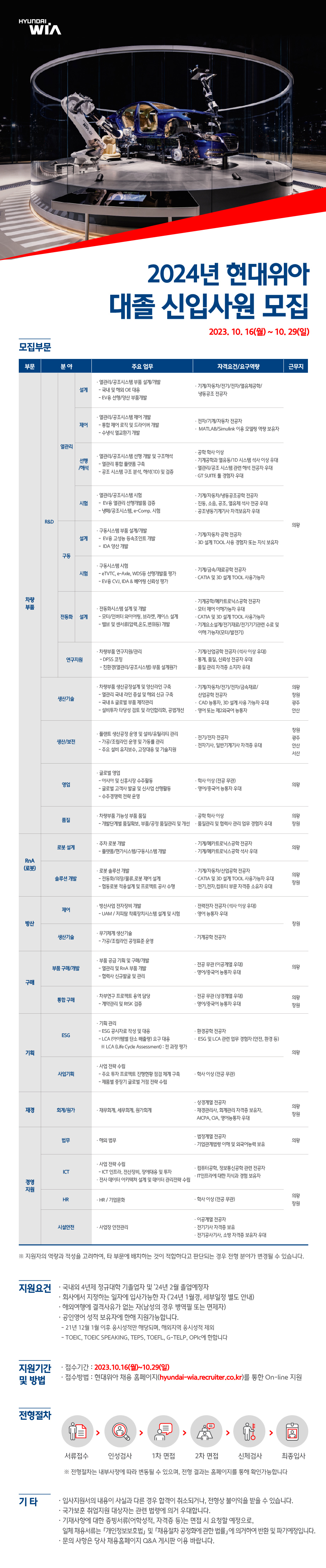 - 접수방법 : 현대위아 채용 홈페이지 (hyundai-wia.recruiter.co.kr)를 통한 On-line 지원