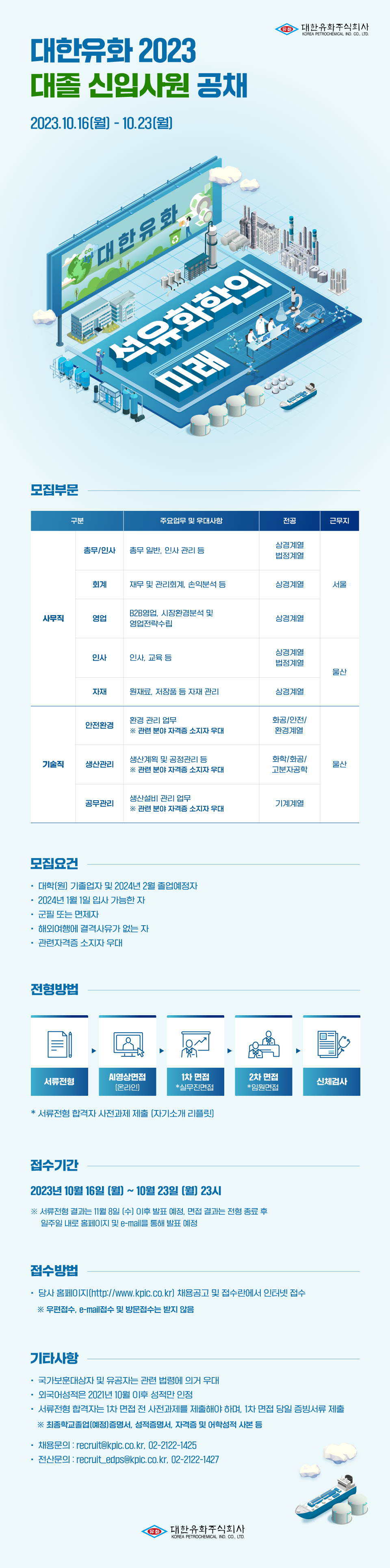 [대한유화] 2023 대졸 신입사원 공채 (~10/23 23:00)