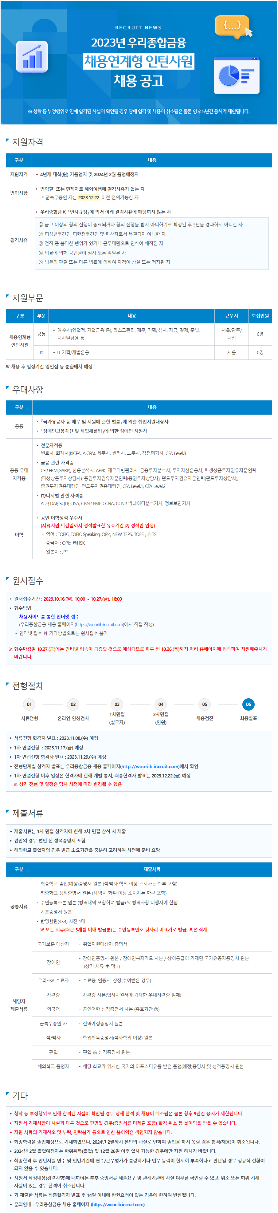 [우리종합금융] 2023년 채용연계형 인턴사원 채용 공고 (~10/27 18:00)