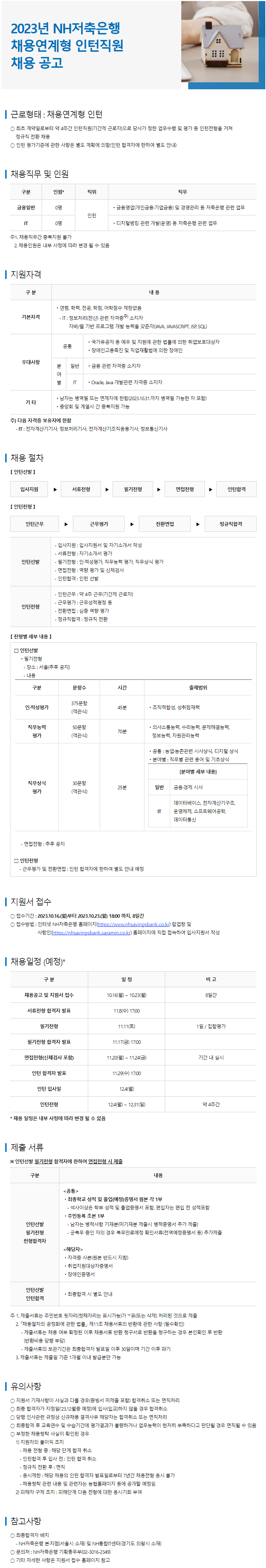 [NH저축은행] 2023년 채용연계형 인턴직원 채용 공고 (~10/23 18:00)
