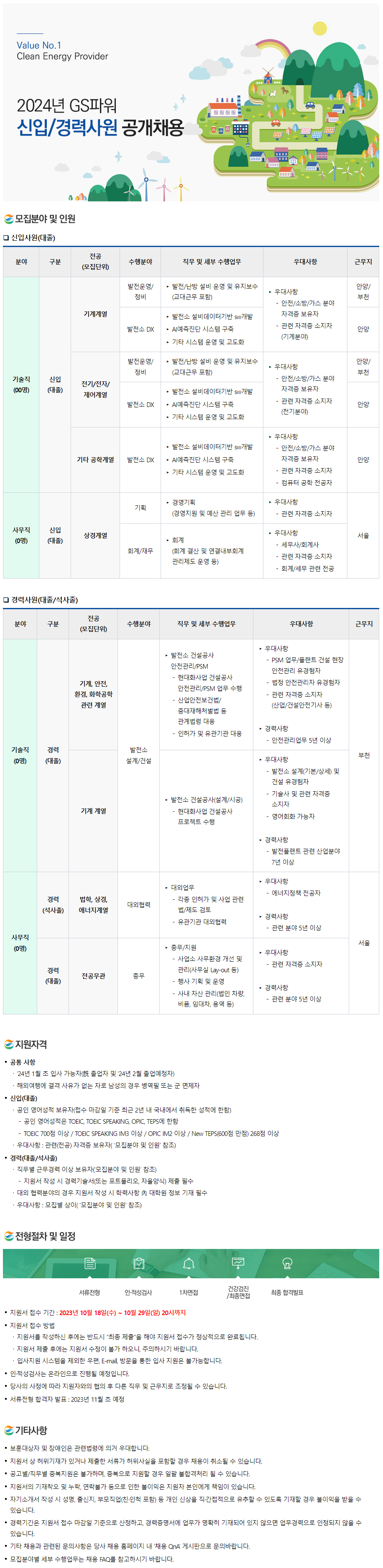 [GS파워] 2024년 신입/경력사원 공개채용 (~10/29 20:00)