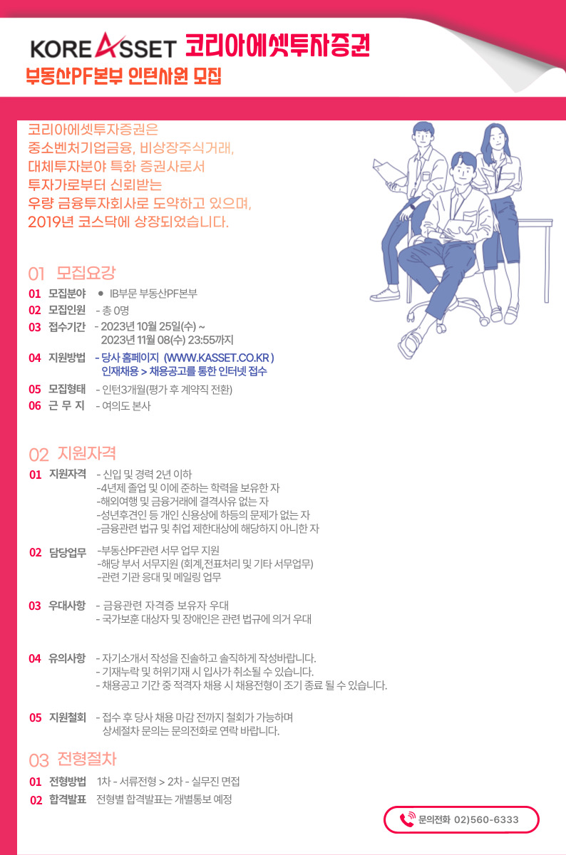 [코리아에셋투자증권] 부동산PF본부 인턴사원 모집 (~11/8)