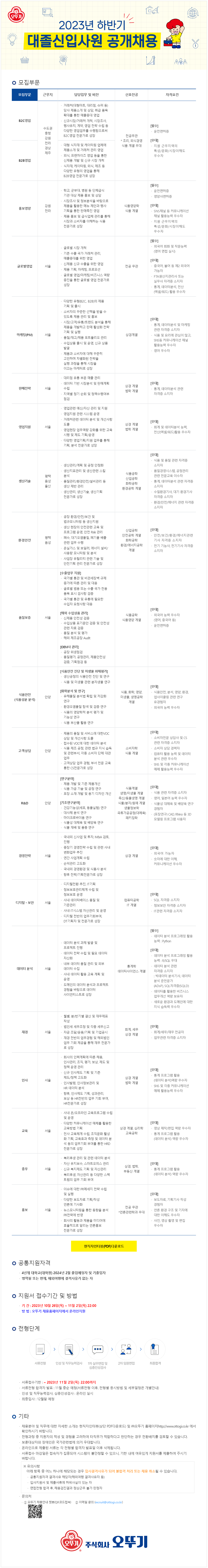 ○ 채용분야 : B2C영업 / B2B영업 / 글로벌영업 / 마케팅 / 판매전략 / 영업지원 / 데이터분석 / 재경 / 인사 등