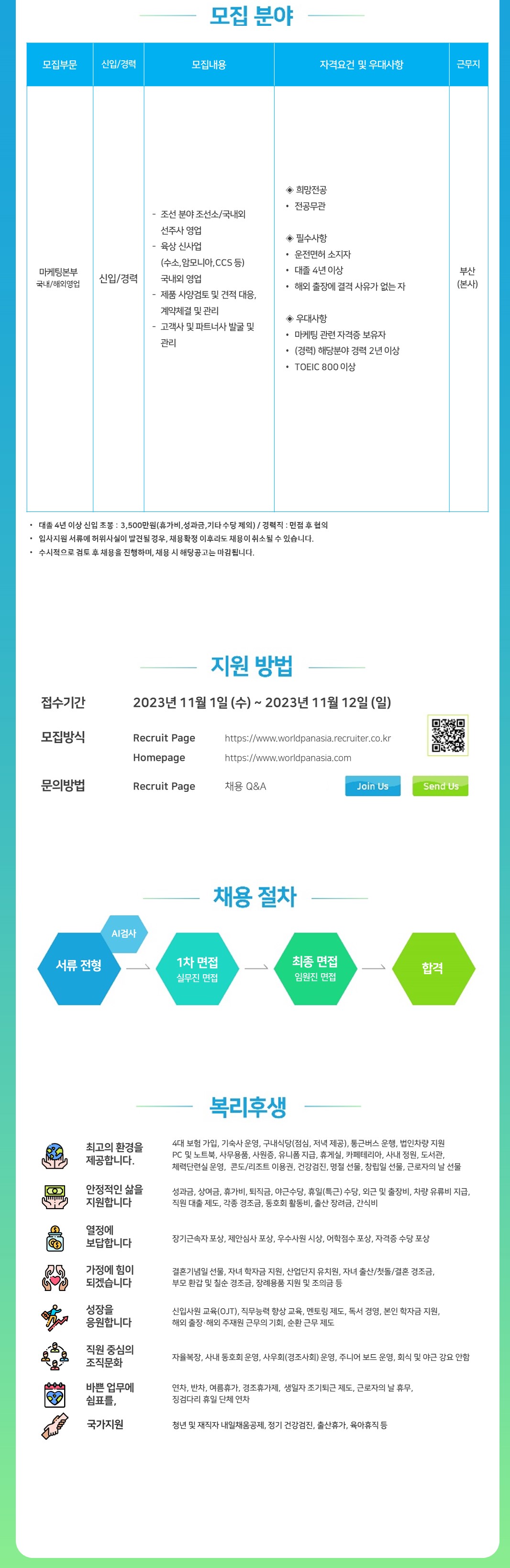 [(주)파나시아] 마케팅본부 국내/해외영업 지원 신입/경력 채용 (~11/12)