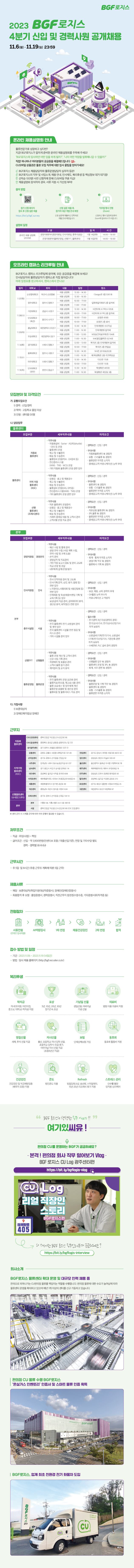 [BGF로지스] 2023년 4분기 신입 및 경력사원 공개채용 (~11/19)