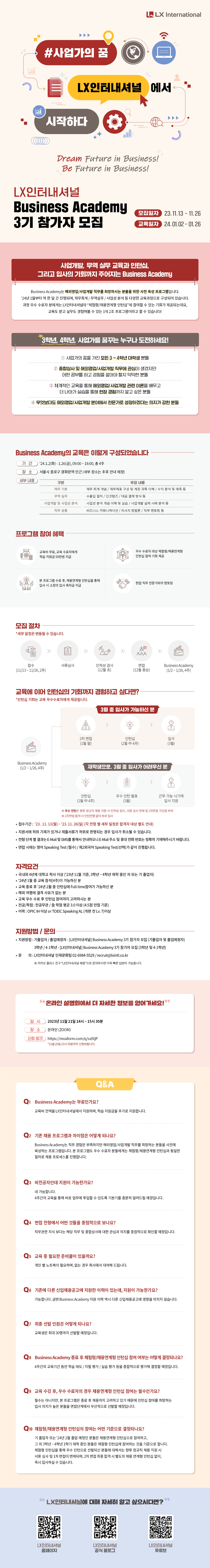 [LX인터내셔널] Business Academy 3기 참가자 모집 (~11/26)