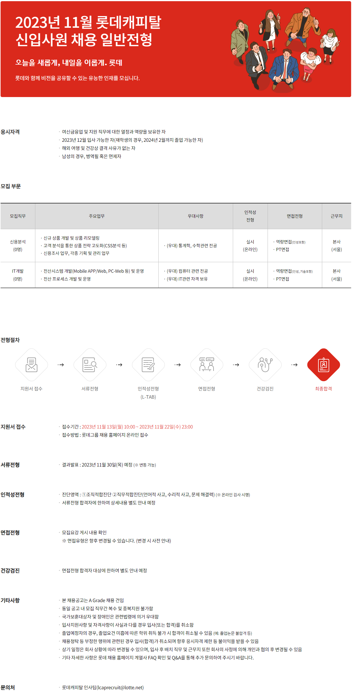 [롯데케피탈] 2023년 11월 신입사원 채용 일반전형 (~11/22)