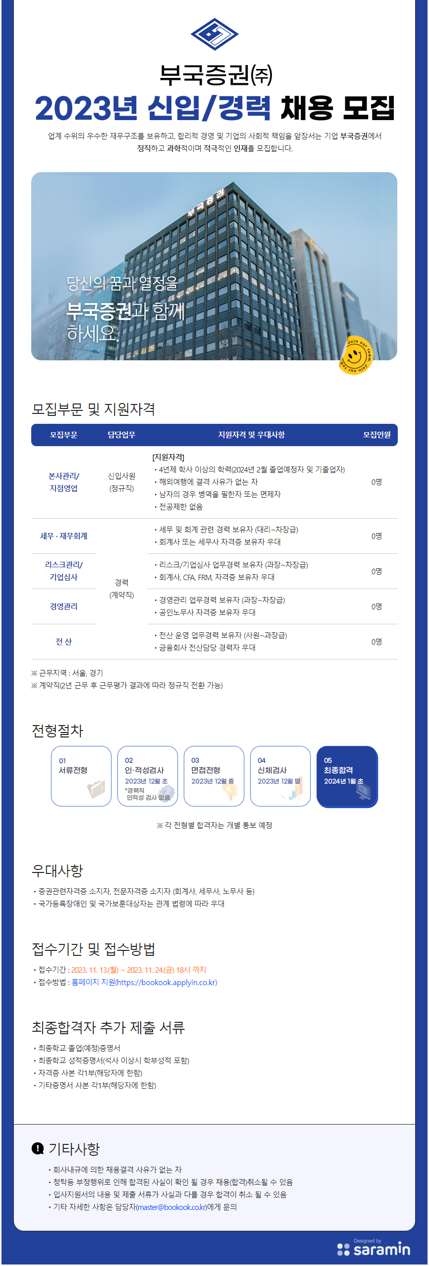 [부국증권] 2023년 신입/경력 채용 모집 (~11/24 18:00)