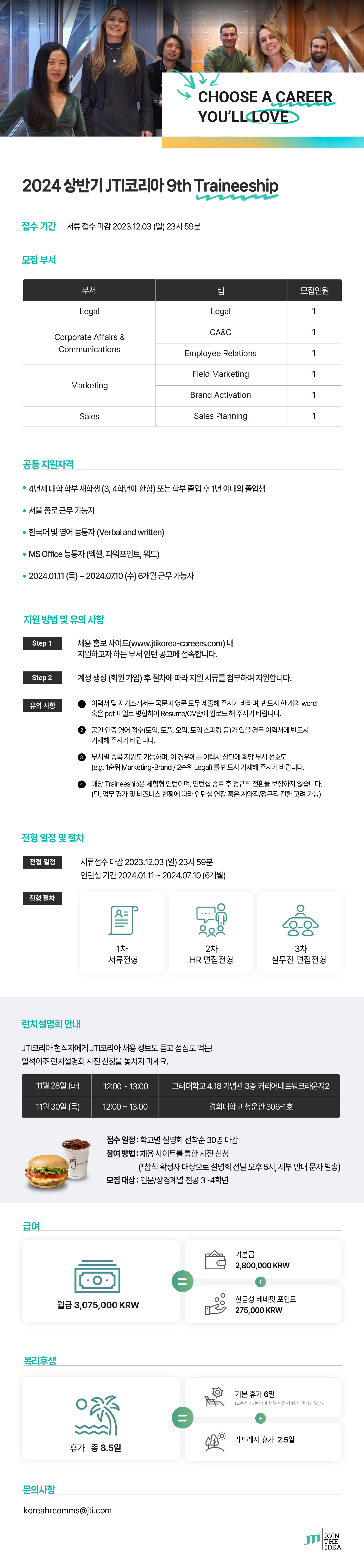 [JTI코리아] 2024 상반기 인턴십 모집 (~12/3)