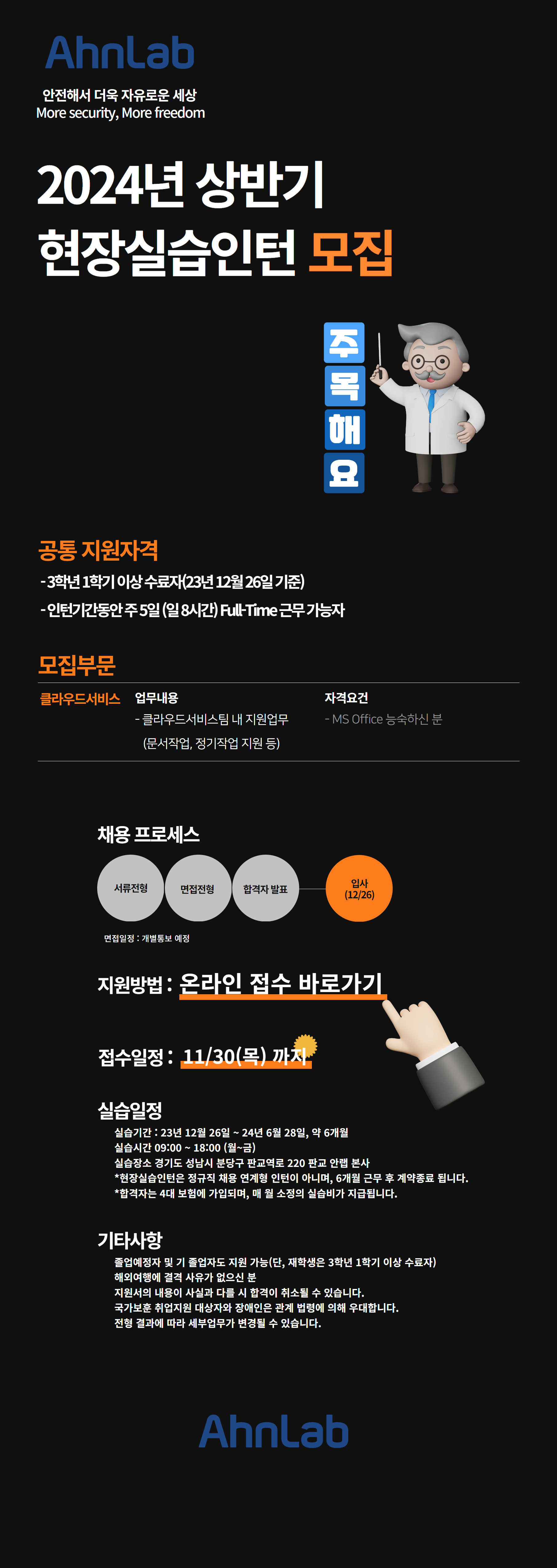 ○ 모집분야 : 클라우드서비스팀 내 지원업무(문서작업, 정기작업 지원 등)
