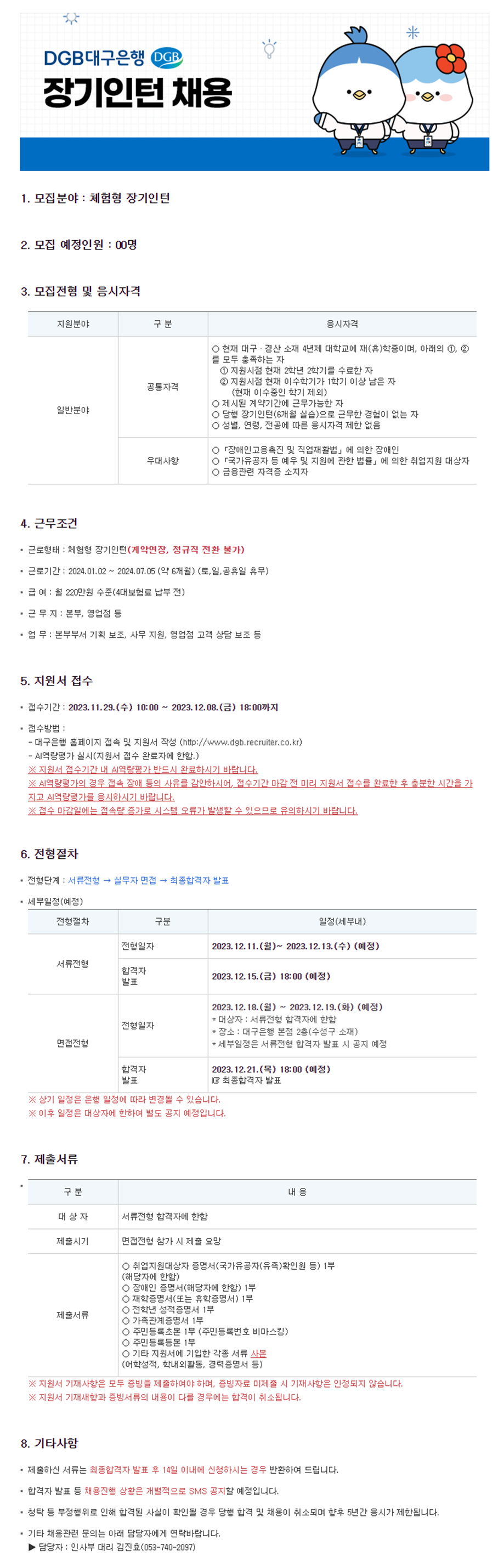 [DGB대구은행] 2024년 상반기 장기인턴 모집 (~12/8 18:00)