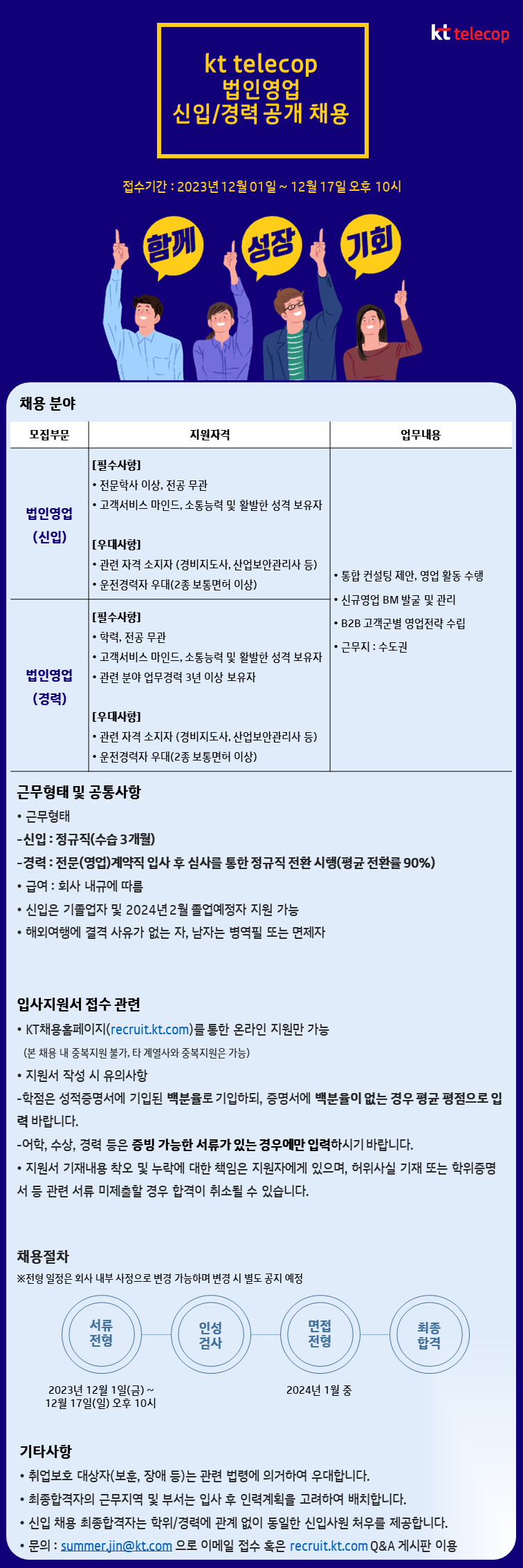 [KT telecop] 법인영업 신입/경력 공채 (~12/17 22:00)