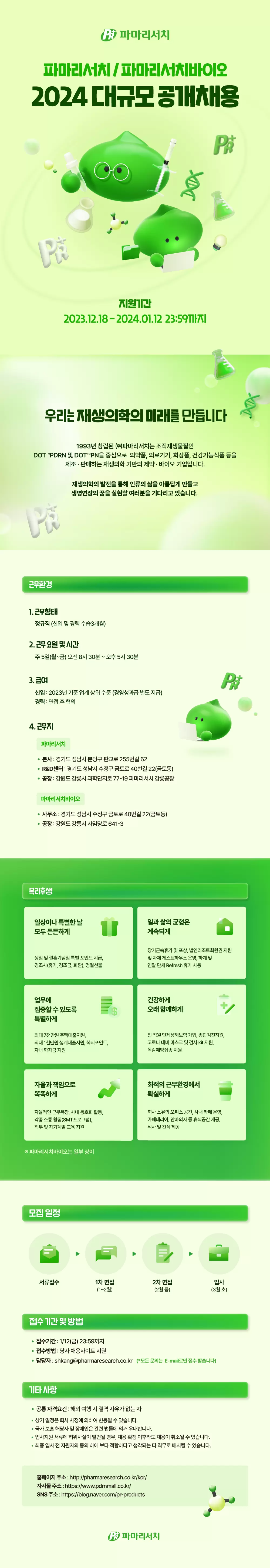 [파마리서치/파마리서치바이오] 2024 대규모 공개채용 (~1/12)